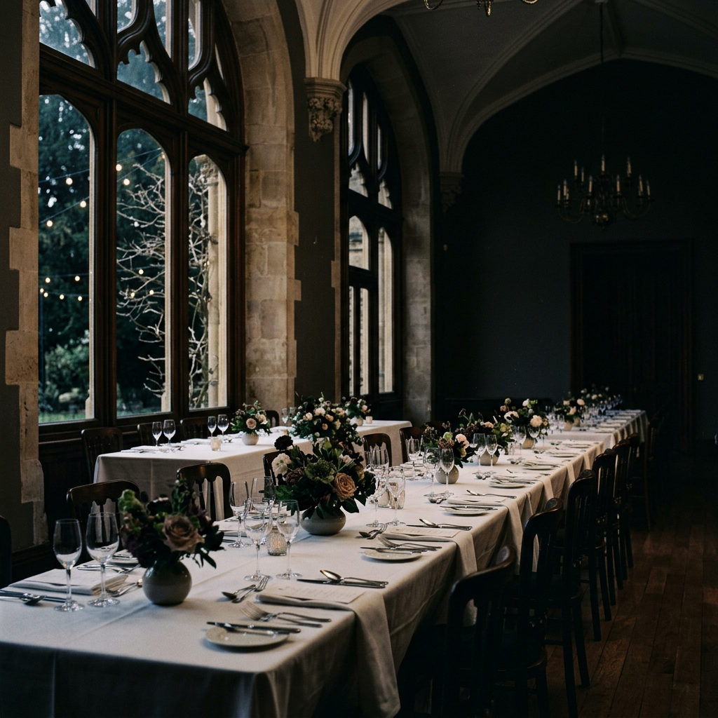 Dinner is served, as guests settle in to enjoy a beautiful meal together.
